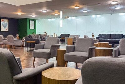 Terminal 2: Airside - After Security Checks, turn left and the lounge is located next to Gate 75.